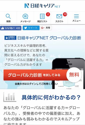 実は私、転職サイトの日経キャリアNETに登録していて定期的にサイトをチェックしている。 そうしたところ、サイト上で「グローバル力診断テスト」なるものがあったので、やってみることにした。 果たして、英語も喋れない上に、海外出張も中国に一回しかした…