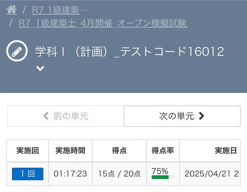 総合資格学院のオープン模擬試験(4月開催)に取り組んだ。 前回(3月開催)のオープン模試の結果は99点/125問中だったが、果たして今回はどうか。 オープン模擬試験(4月開催)結果 総合計95点/125問中。とりあえず目標ラインを越えた。法規と構造が点数的…