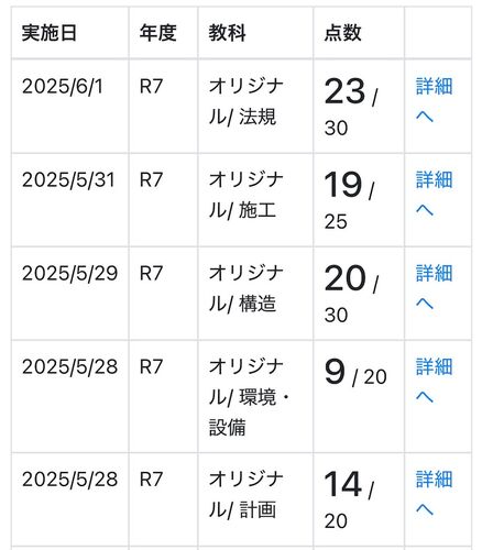 5月24日に速学のオリジナル模試が公開された。 なかなかまとまった時間を確保するのが難しかったので、一科目ずつ取り組み、一番後回しにしていた「法規」を今日の午前中に取り組むことができた。 速学オリジナル模試の結果 採点結果 合計85点。法規と施工で…